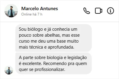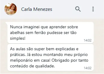 Caso, por qualquer motivo, sinta que o curso não atendeu às suas expectativas, é só solicitar o reembolso total dentro desse prazo. Comece sua jornada no universo das abelhas sem ferrão com confiança, aproveite as aulas práticas e teóricas e descubra como cuidar dessas abelhas incríveis pode transformar sua relação com a natureza, sua rotina e até mesmo abrir portas para um novo empreendimento.
