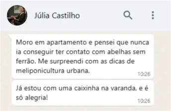 Ao se inscrever no Curso de Meliponicultura, você não estará apenas aprendendo sobre o universo das abelhas sem ferrão — fará parte de uma comunidade exclusiva e vibrante. Esse espaço foi criado para trocar experiências, tirar dúvidas, compartilhar resultados e evoluir junto com outros apaixonados pela natureza, pela sustentabilidade e pelas abelhas nativas.